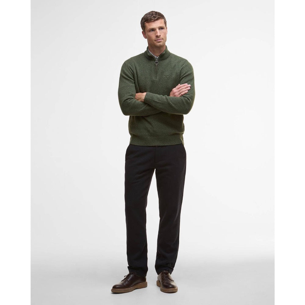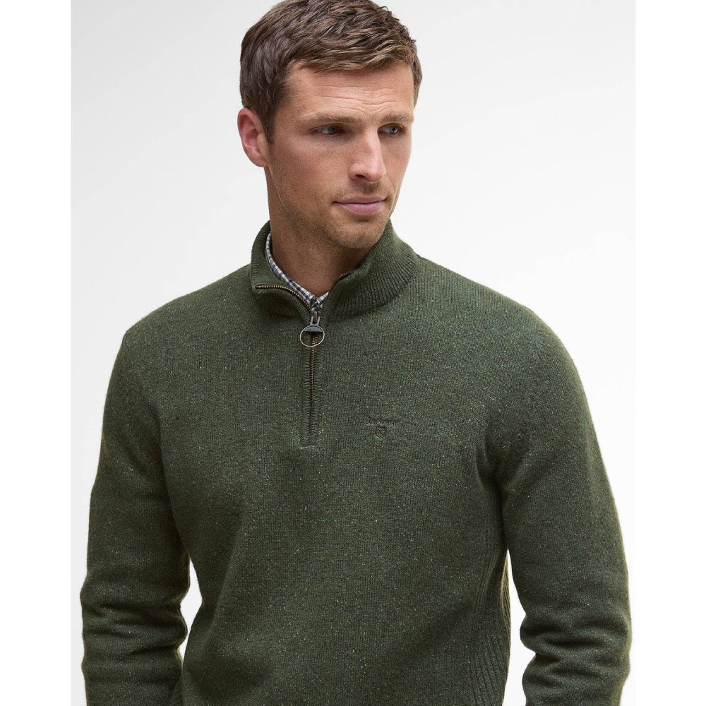 A wardrobe essential for any stylish man, this Barbour Tisbury Half Zip Sweater is perfect for the colder months. This characterful half-zip sweater is crafted in a trendy tweed-fleck yarn; the high percentage of wool and touch of silk create an extra-luxurious feel we think you will love. Featuring a signature Barbour zip and ribbing at the hem and cuffs, this versatile layer is finished with contrast Barbour shield embroidery at the chest.