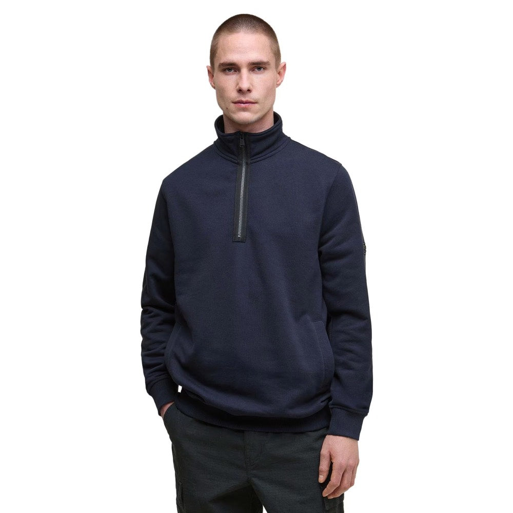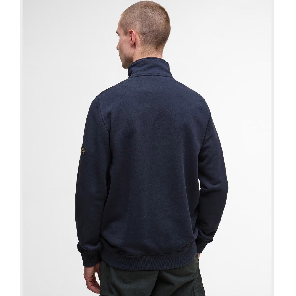A true essential for any smart casual wardrobe, the Barbour Outline Half zip sweater is a premium layer for year round wear. Long sleeve funnel neck sweatshirt with centre front half zip, dyed to match rib collar, hem and cuffs. Features the outlined black and yellow badge.