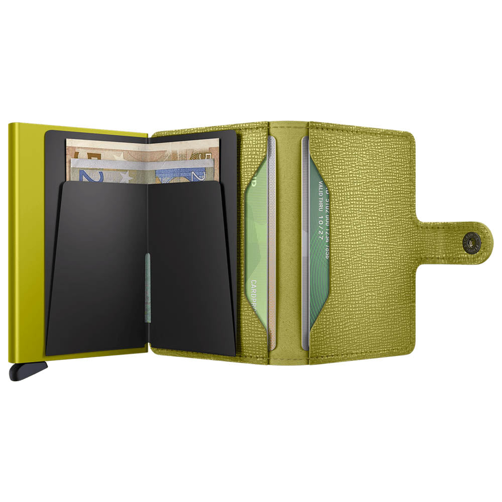Miniwallet Crisple Lime is corrected-grain leather, made in Holland from European cowhide