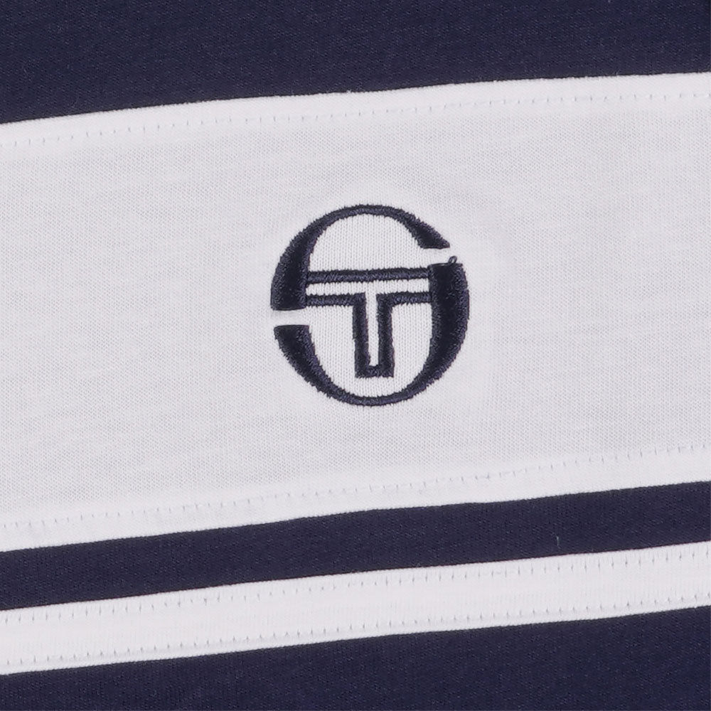 Sergio Tacchini Damarindo Vest in White and Maritime Blue. This versatile vest features an embroidered logo on the chest, straight hem offers a classic silhouette.