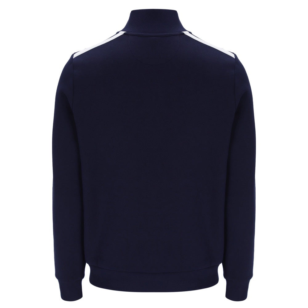 Sergio Tacchini Locchi 1/4 Zip Sweatshirt Maritime Blue/White. Crafted from soft cotton blend fabric, it delivers lightweight warmth perfect for layering or wearing solo. The regular fit silhouette features a distinctive funnel neck and quarter zip closure for easy adjustment, whilst ribbed trims provide a refined finish. Contrast stripes to the shoulders.Finished with an embroidered logo badge to the chest.