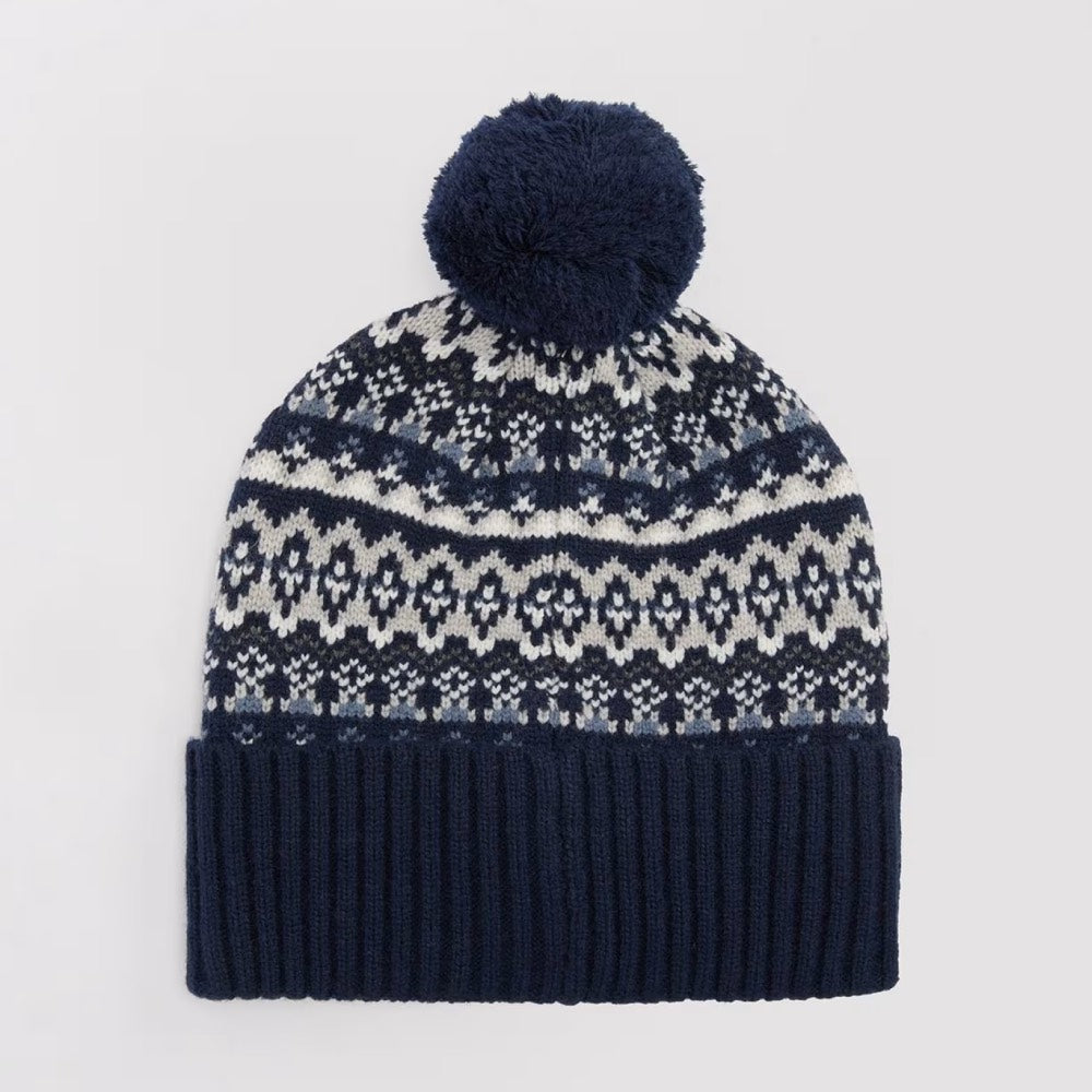 Keep warm in the winter weather with the men's Barbour Marlow Fair Isle Pom Beanie Hat. This knitted beanie features a playful, all over fairisle design and matching pompom for a touch of whimsy. The turnback hem with Barbour branding gives a subtle nod to the brand's heritage. Whether you're out for a country stroll or facing a chilly commute the Marlow an ideal choice for any stylish man's winter wardrobe.