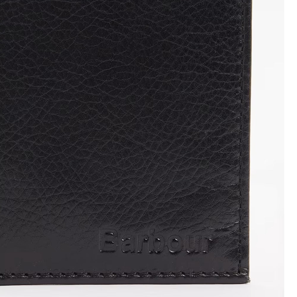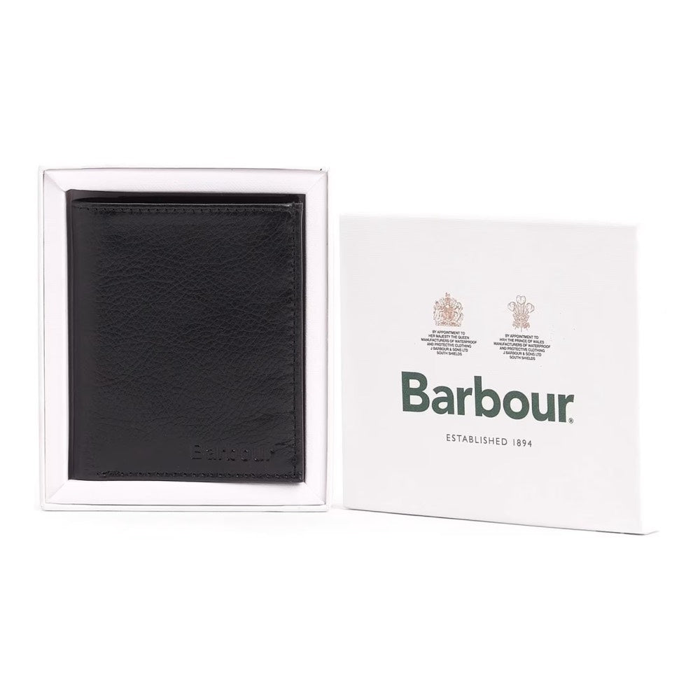 The Barbour Colwell Small Leather Billfold Wallet in Black will make a stylish upgrade for yourself or a perfect gift for a loved one . Cut from 100% real leather with room for multiple cards, the wallet has a stylish look with the Barbour logo embossed to the front. Neatly presented in a branded gift box, this will make for a perfect gift for any stylish gent.