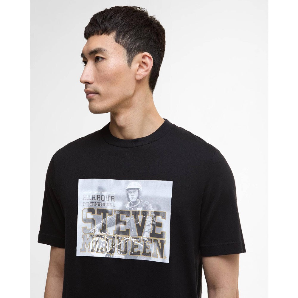 The men's Barbour International Scape T-Shirt combines casual comfort with iconic style. Made from 100% cotton, it offers a soft, breathable fit, perfect for everyday wear. The classic crew neck features an inlaid 1x1 rib collar and open cuffs for a relaxed, easy going feel. A bold photographic Steve McQueen print at the centre chest adds a vintage-inspired, motorsport edge. Ideal for pairing with jeans or layering under a jacket, this tee brings timeless character to any laid-back outfit.