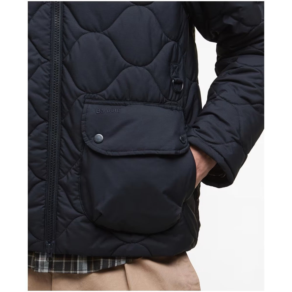 Elevate your outerwear game with the men's Barbour Jig Quilted Jacket — where classic comfort meets contemporary style. Designed with a sleek quilted finish for lightweight warmth, this versatile layer is ideal for crisp days and cool nights. The standout Berber fleece sit-down collar adds a touch of rugged sophistication, while the front zip fastening ensures easy wear. Two lower patch pockets with studded flaps combine functionality with signature Barbour detail, making this jacket a go-to for both country walks and city strolls.
